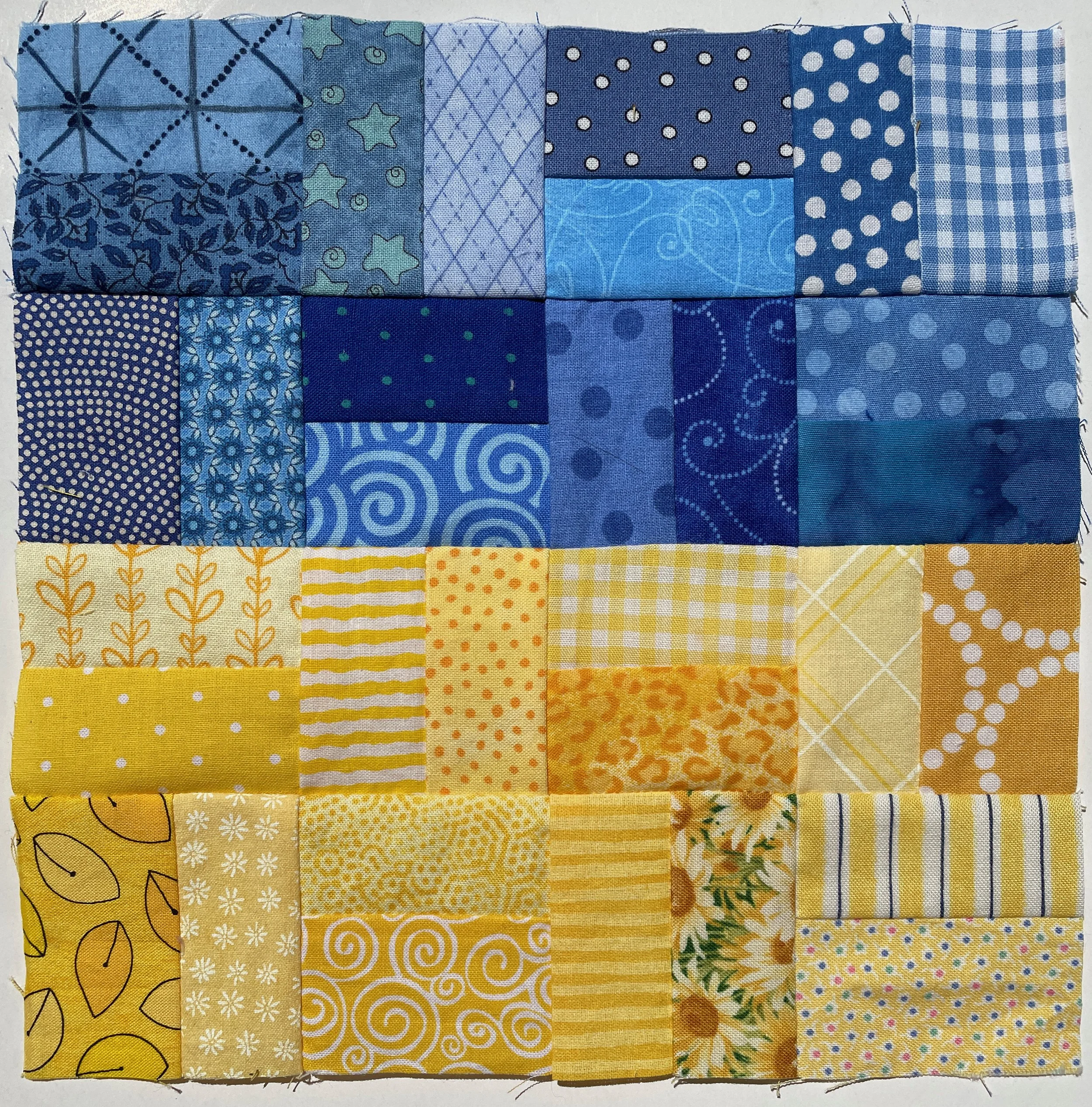 For directions on how to make an 8-1/2” Ukrainian flag block in a traditional rail fence pattern, use this link.